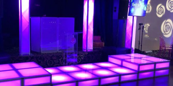 LED Dance Stages for Bar Mitzvahs, Sweet 16s & Weddings. These can be made custom for any event. They can all change colors for your matching decor.
